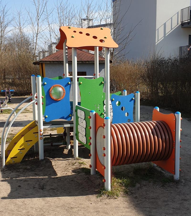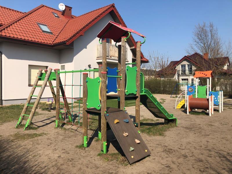 Na terenie przedszkola znajduje się obszerny plac zabaw wyposażony w atestowane zabawki dla dzieci w różnym wieku. Dzieci mają do dyspozycji: boisko do gry w piłkę nożną, zestawy rozwojowe dla starszych i młodszych, huśtawki, duży domek, zadaszoną od słońca piaskownicę z atestowanym piaskiem.
