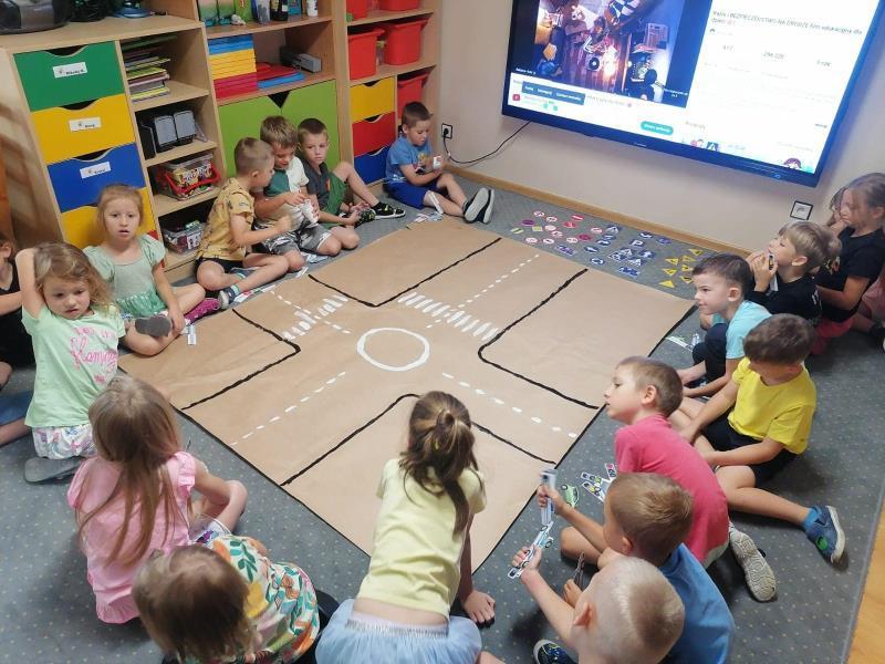 tablicy multimedialnej, z której korzystają dzieci podczas zajęć z