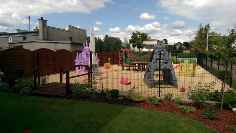 Do przedszkola przynależy ogród o łącznej powierzchni 1300m podzielony na trzy części. W ogrodzie jest dużo zieleni, znajdują się w nim zabawki i sprzęt posiadający odpowiednie atesty oraz ławeczki, na których Dzieci mogą odpoczywać po wyczerpującej zabawie.