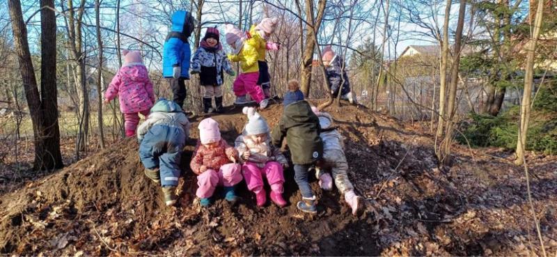 - Stały kontakt z naturą – przyroda stymuluje wszystkie zmysły, zabawa na dworze jest więc najlepszą terapią sensoryczną. Ruch na powietrzu pobudza dojrzewanie układu nerwowego, przyspiesza rozwój motoryki, koordynacji ruchowej oraz wytrzymałości organizmu. Duża przestrzeń i plac zabaw sprawiają, że nasi podopieczni mogą nieprzerwanie czerpać radość z przebywania na łonie natury – eksplorowania, eksperymentowania oraz zdobywania szacunku dla przyrody.